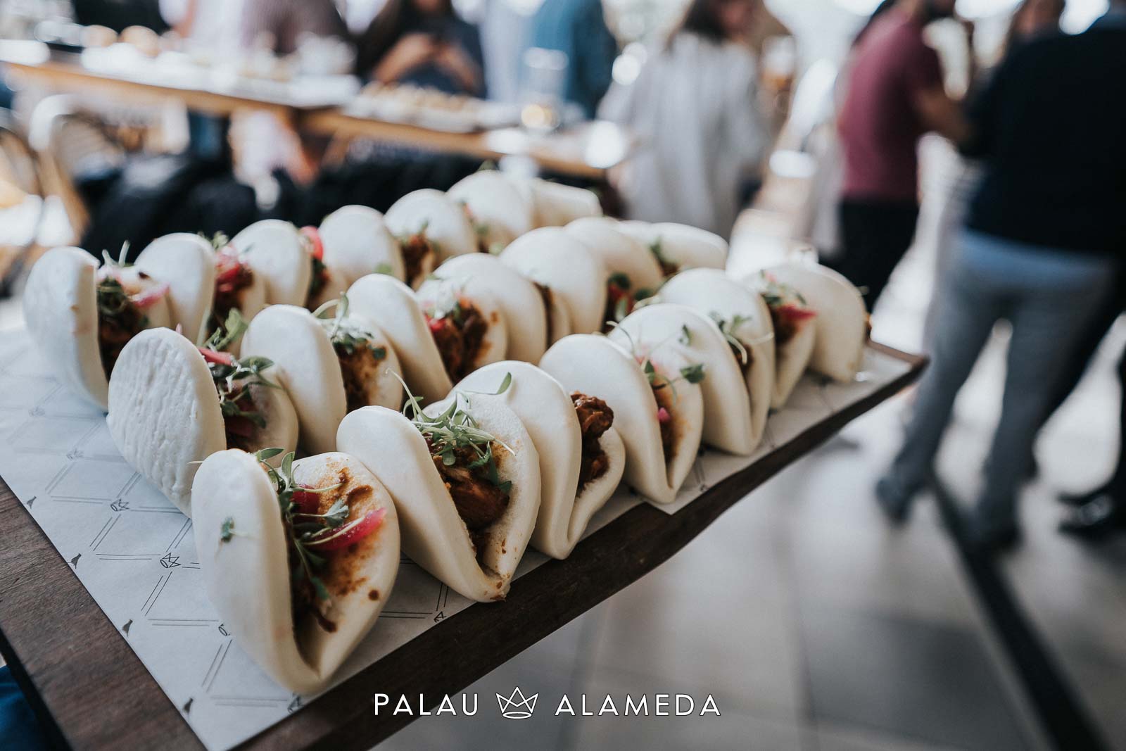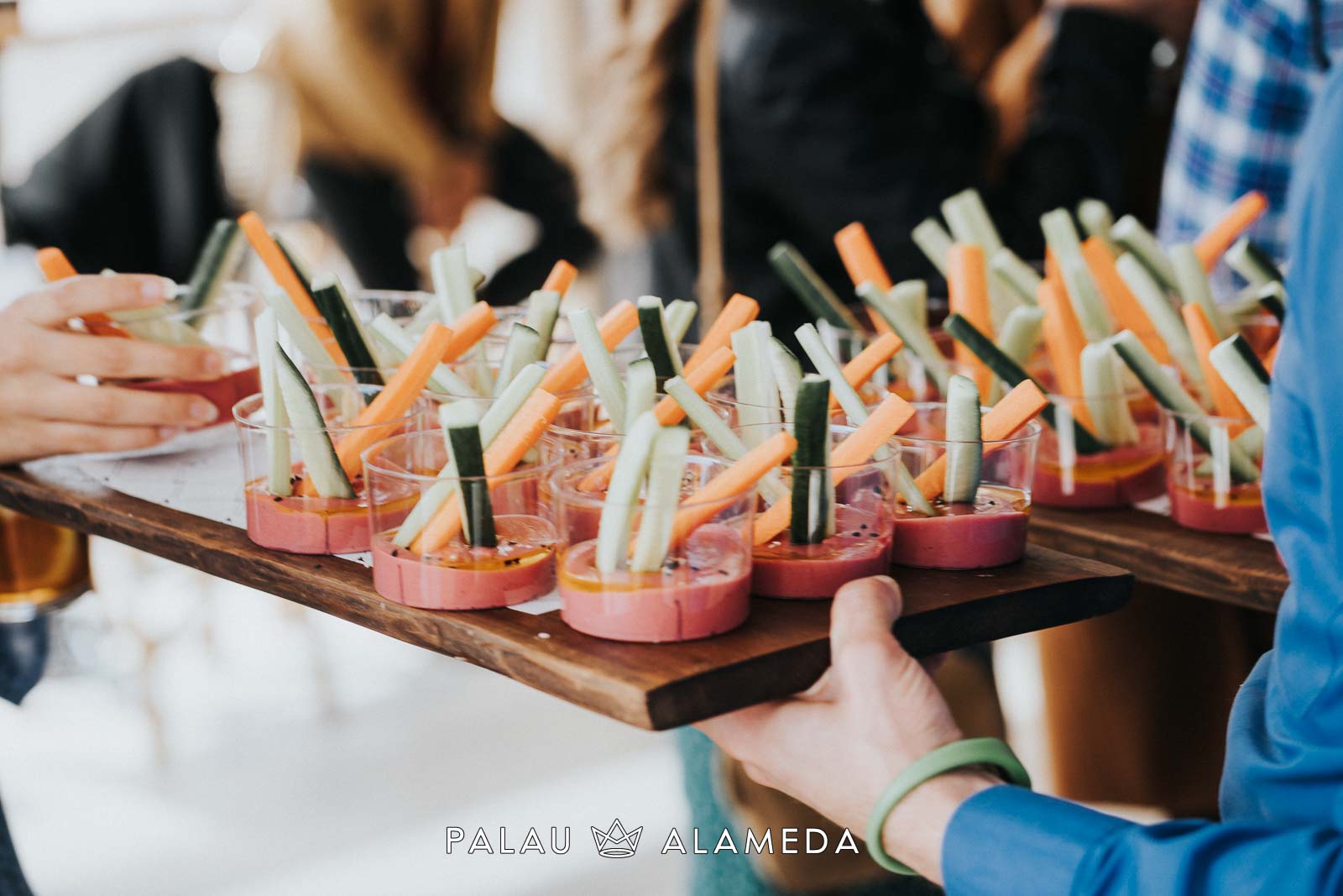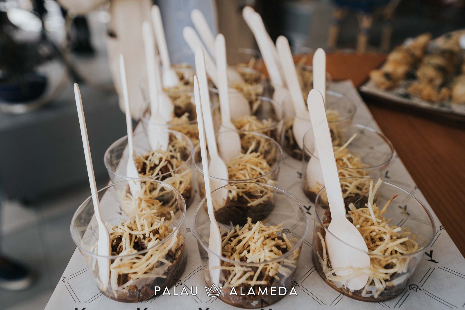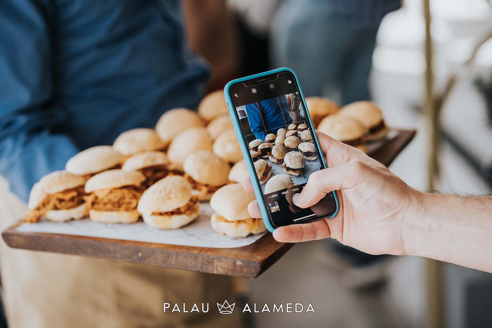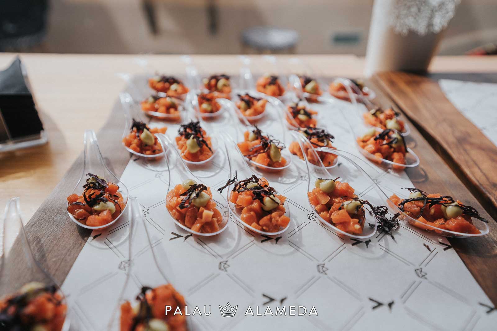 Para este gran encuentro foodie en Palau Alameda nuestro chef Nicolás Román, elaboró un menú cóctel especial, con el que sorprender a los invitados. El menú estaba compuesto por: hummus de remolacha con crudités, tartar de salmón con vinagreta de shiso morado, croqueta de Stilton y puerro, hamburguesa de pulled pork con queso cheddar, albóndigas de sepia en tempura con nori y ponzu, carbonada flamenca con patata paja y bao de pollo mole. De postre un sorbete de maracuyá y una tarta de dos chocolates regalo de Palau Alameda a just_for_foodies, con la que sorprendimos a Gonzalo y todos sus invitados.